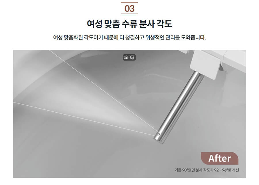 - 와이드 세정: 넓은 범위를 한 번에 세정해 더욱 쾌적한 사용 경험 제공