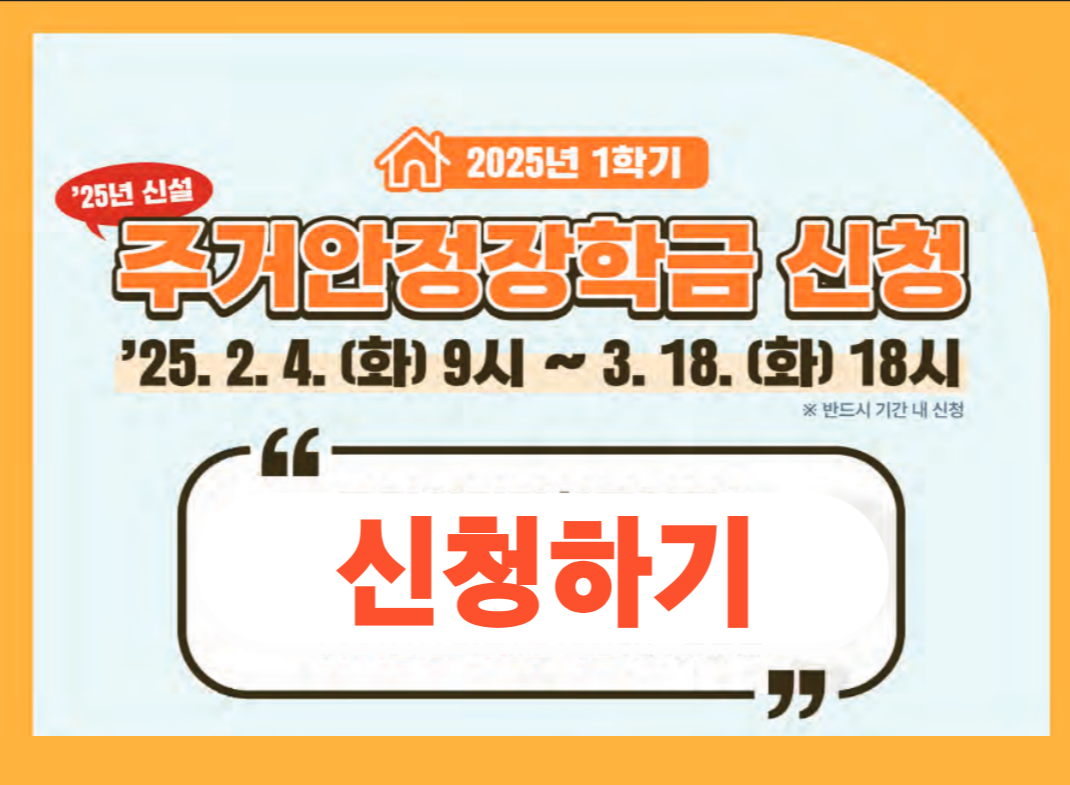 2025년 1학기 주거안정장학금 신청을 원하신다면, 지금부터 준비해야 합니다! 필요한 서류를 미리 확인하고, 신청 기간 내에 접수하여 장학금을 받을 수 있도록 하세요.